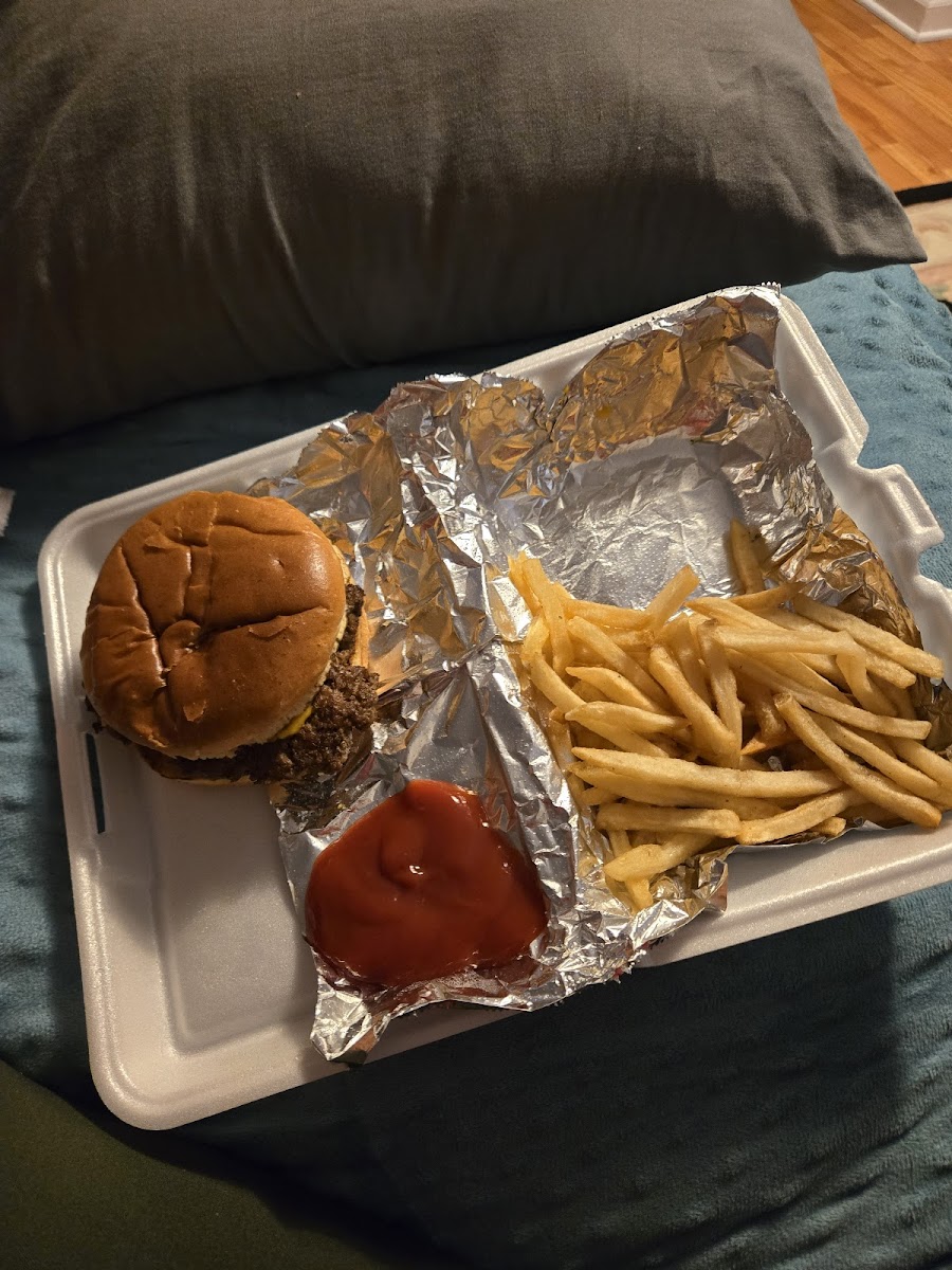 Great place! One of those I drove past a million times saying I needed to stop there - well today I finally did! Counter guy seemed to have a business interest in place because he was very helpful recommending items and saying why/how theirs was unique. My brother in law and I finally went with the cheeseburgers and fries. Huge portions and ample toppings! Glad we went with small fry order because they filled half the styrofoam container! Please go you wont be disappointed!
